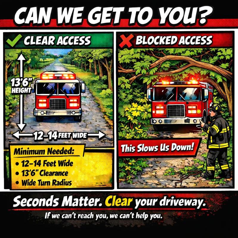 Low-hanging branches, overgrown brush, and tight driveways can slow us down—or stop us from getting to you altogether.